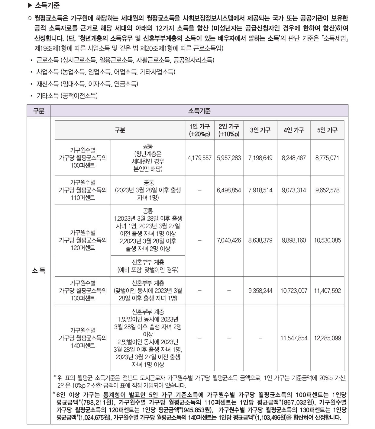 2) 소득 기준은 아래 표를 참고 부탁드립니다.