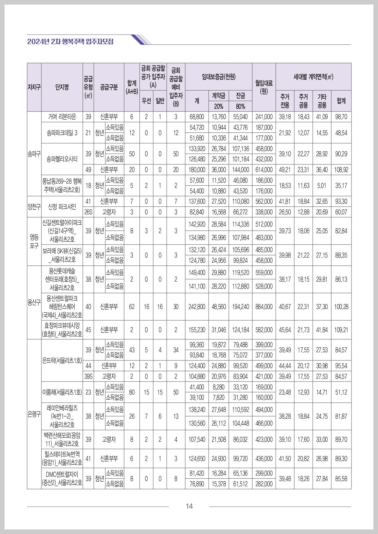2024년 2차 SH 행복주택 입주자 모집 일정