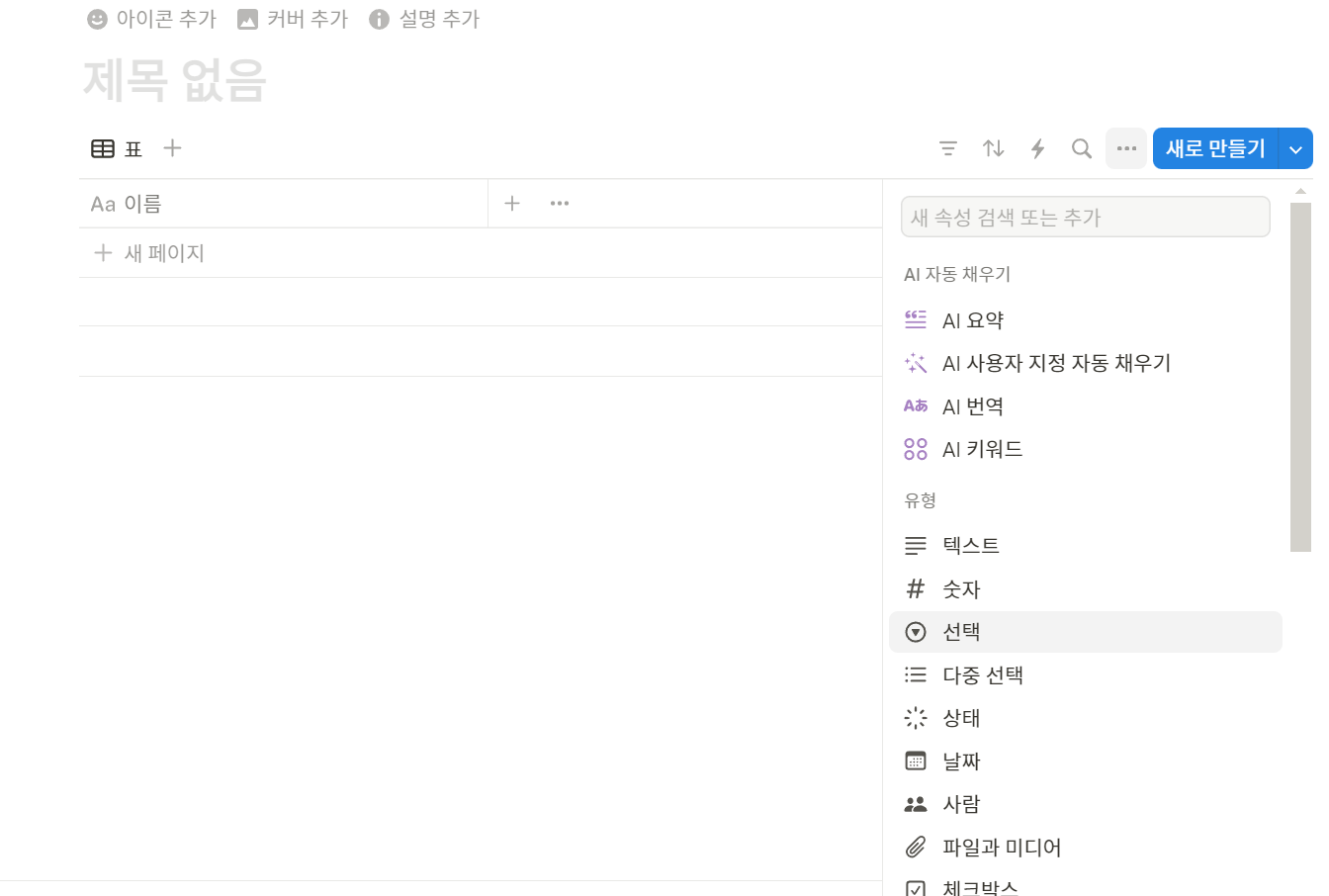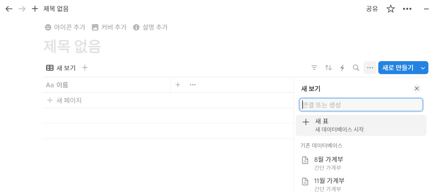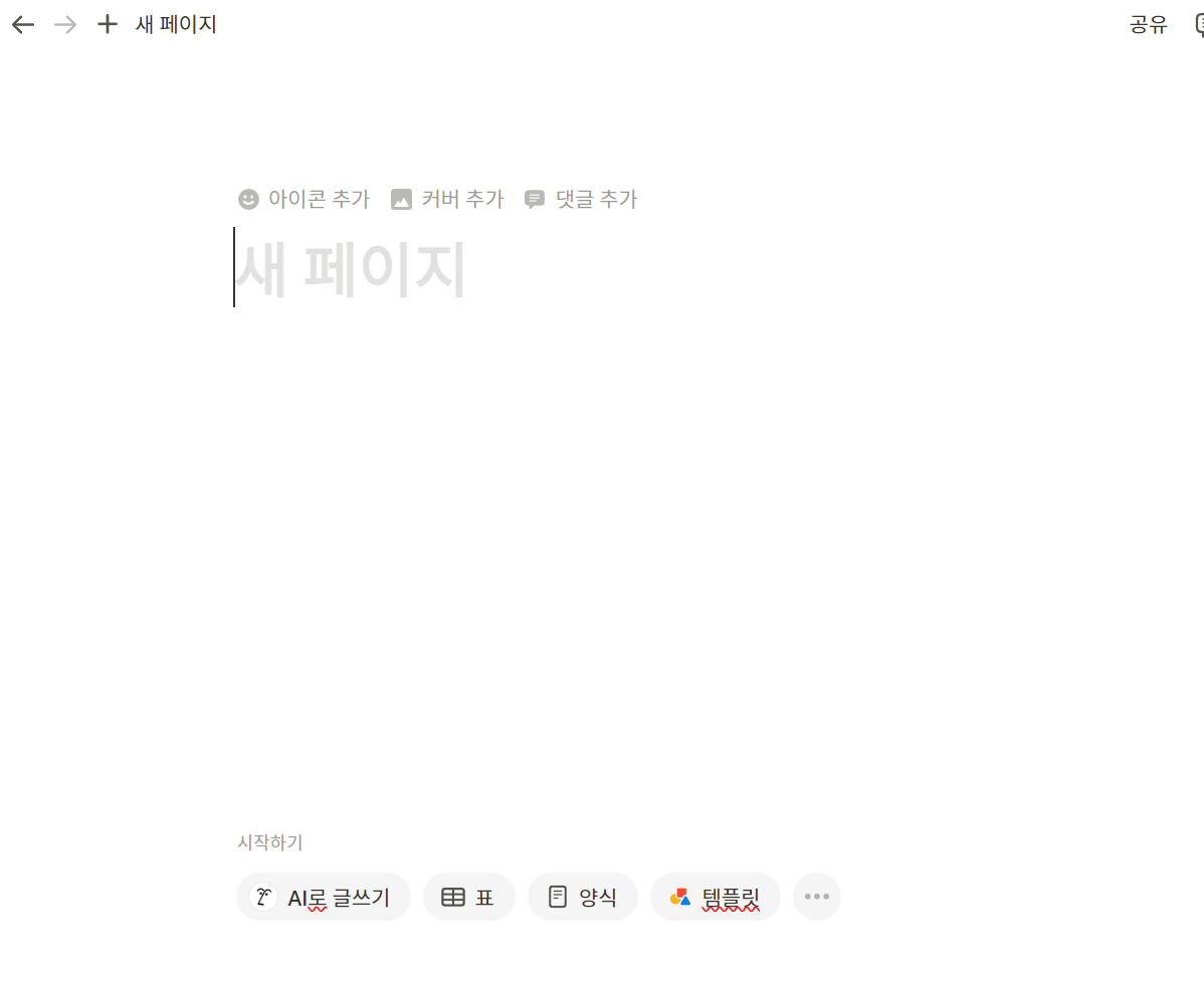 노션에서 새 페이지를 만들면 위 창과 동일하게 뜰 겁니다.