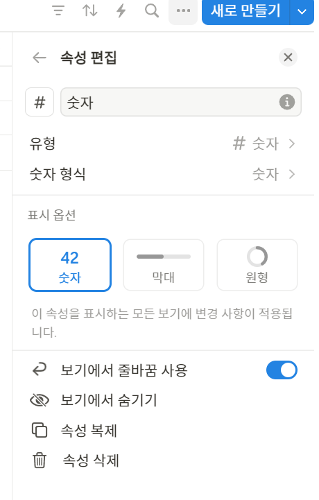 "유형"은 "숫자"로 두시고,